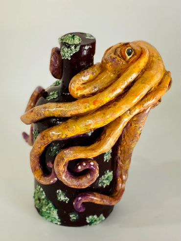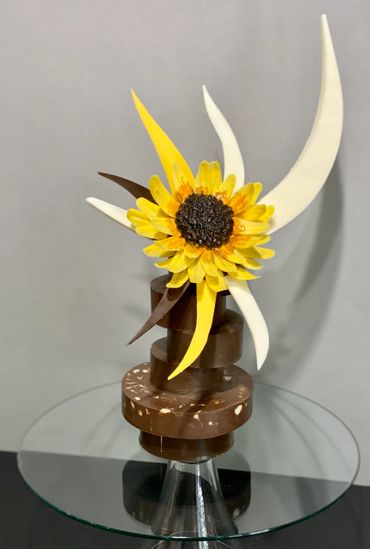 Hand sculpted, hard candy lollipop. The flavor is fireside marshmallow.